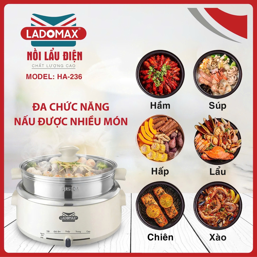 🍲 NỒI LẨU ĐIỆN LÒNG RỜI LADOMAX HA-236 – Dung Tích 4.0L, Lòng Inox 304 Cao Cấp, Vệ Sinh Cực Dễ!